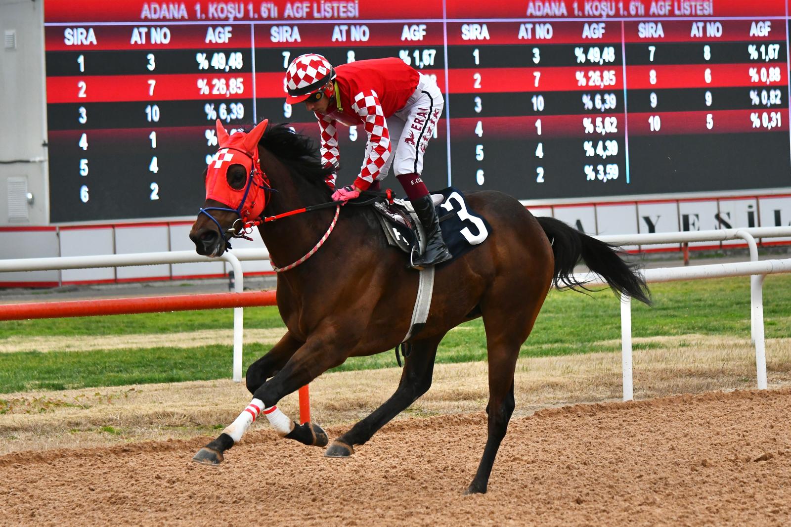 Adana Yeşiloba Hipodromunda 27 Ocak 2026 Salı günü günün birinci koşusu 3 yaşlı tayların maiden yarışıydı.